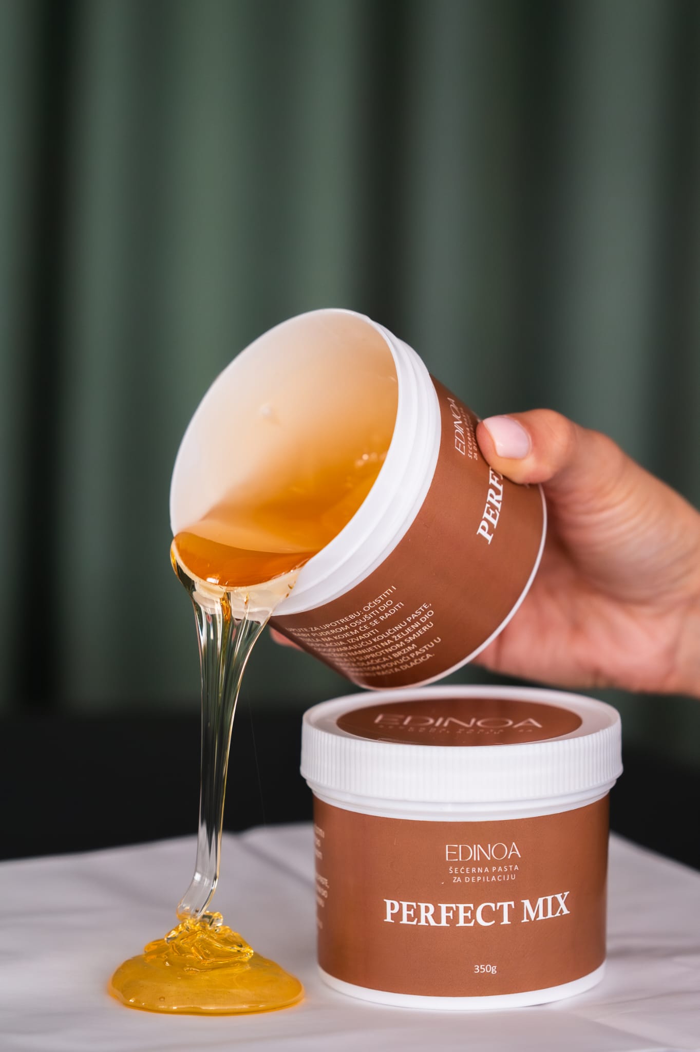 PRFECT MIX šećerna pasta za depilaciju je srednje teksture. Idealna za upotrebu tijekom
